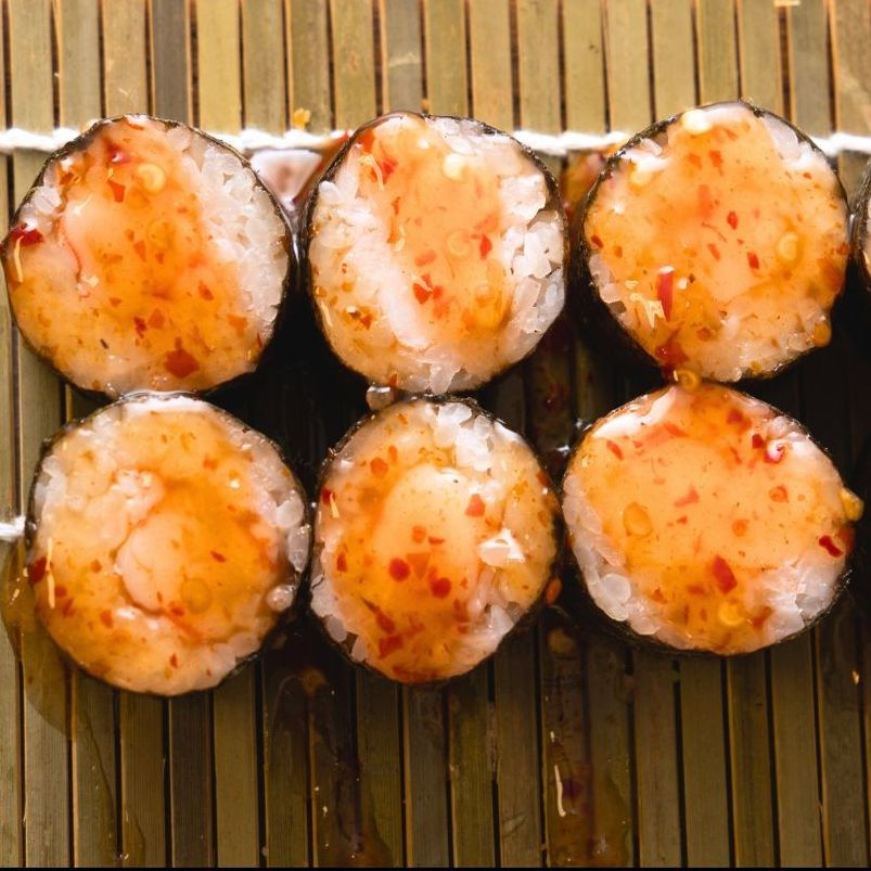 Рис, нори, креветка, соус кисло-сладкий чили.