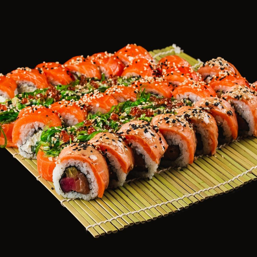 Грин ролл, ролл Фудзи, ролл Бонито, ролл с угрем и огурцом, ролл с лососем и сливочным сыром, ролл Филадельфия Роял.