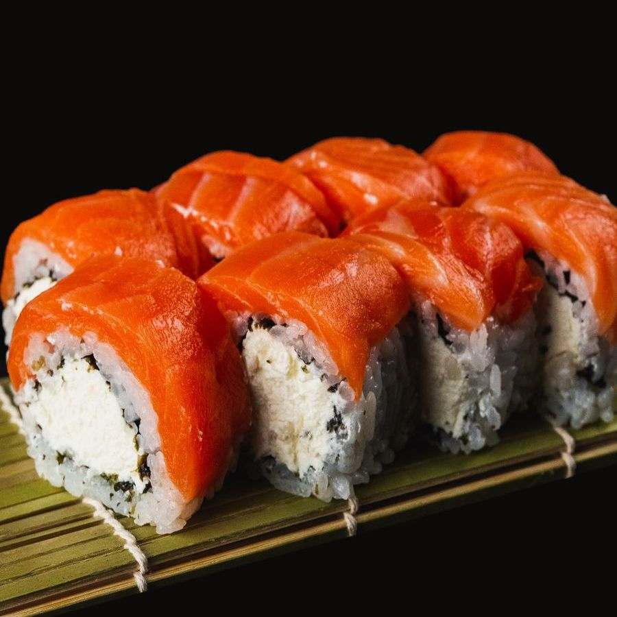 Рис, нори, лосось, сливочный сыр.