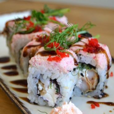 Заказать Рис, креветка в темпуре, огурец, краб, сыр Моцарелла, кунжут.