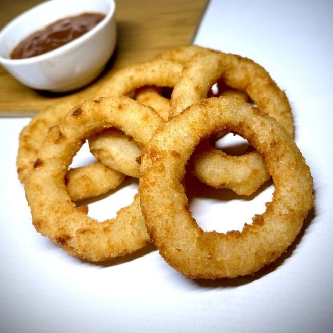 Заказать Аппетитная закуска или гарнир, приготовленная из лука в панировке, обжаренного до хрустящей корочки.