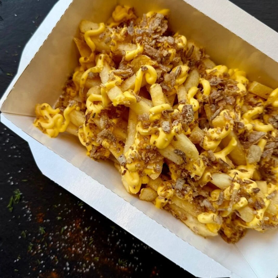 Заказать Лаваш, капуста, помидор, огурец маринованный, говядина, картофель фри, лук криспи, соус Фирменный.
