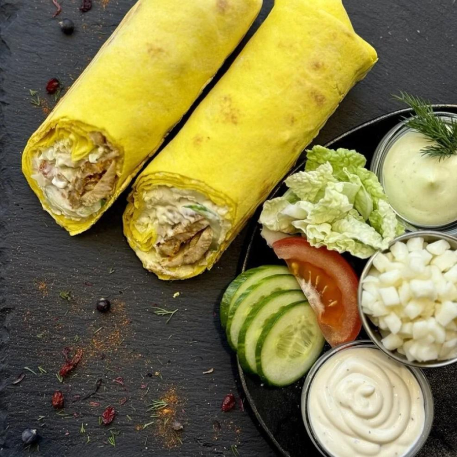 Заказать Лаваш, говядина, фирменный соус, пекинская капуста, помидор, огурец, болгарский перец, маслины, сыр Фета.