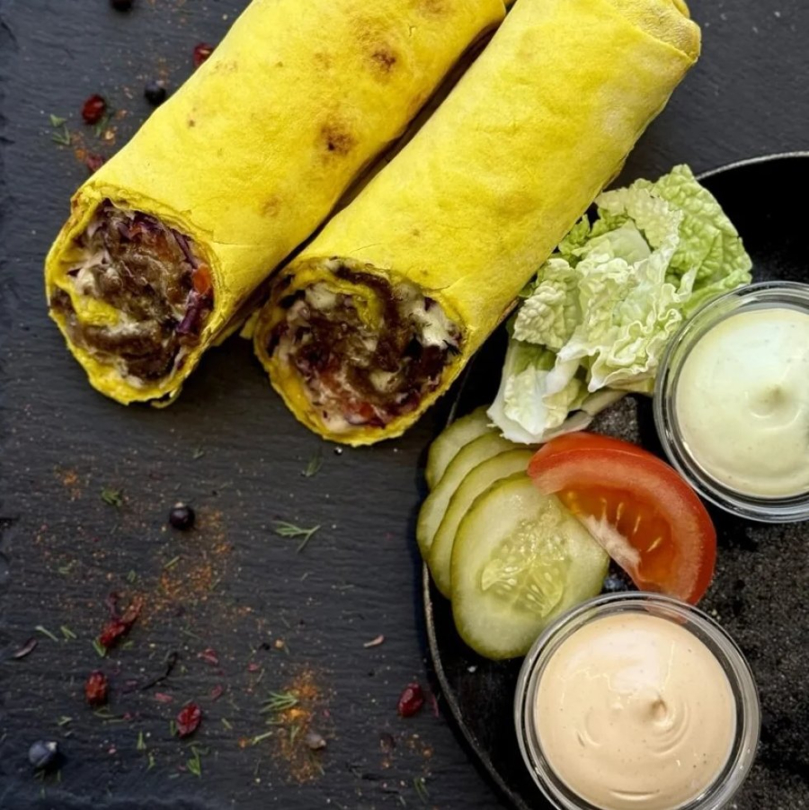 Заказать Лаваш, говядина, фирменный соус, капуста, помидор, маринованный огурец, соус Сырный, сыр Моцарелла.