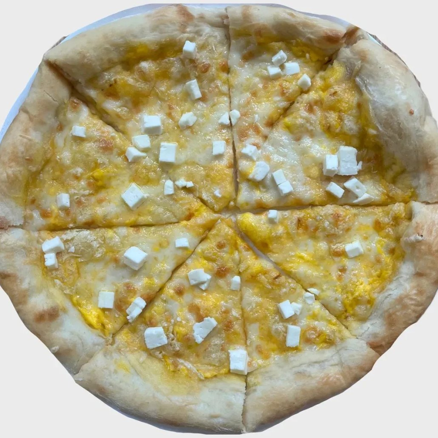 Сырный соус, двойной сыр моцарелла, чеддер, пармезан, фета.