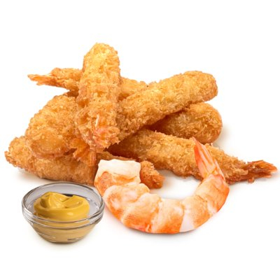 Оптимальный вариант порции. Сочные королевские креветки в нежной золотистой панировке.