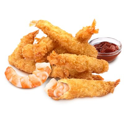 Максимальное удовольствие! Дюжина королевских креветок в золотистой панировке с соусом на выбор - отличный вариант для компании или тех, кто любит по-настоящему много вкуса.