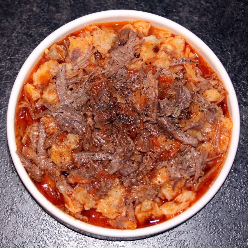Мясо говядина, лук, рубленая слоёная лепешка, помидор, морковь, специи.