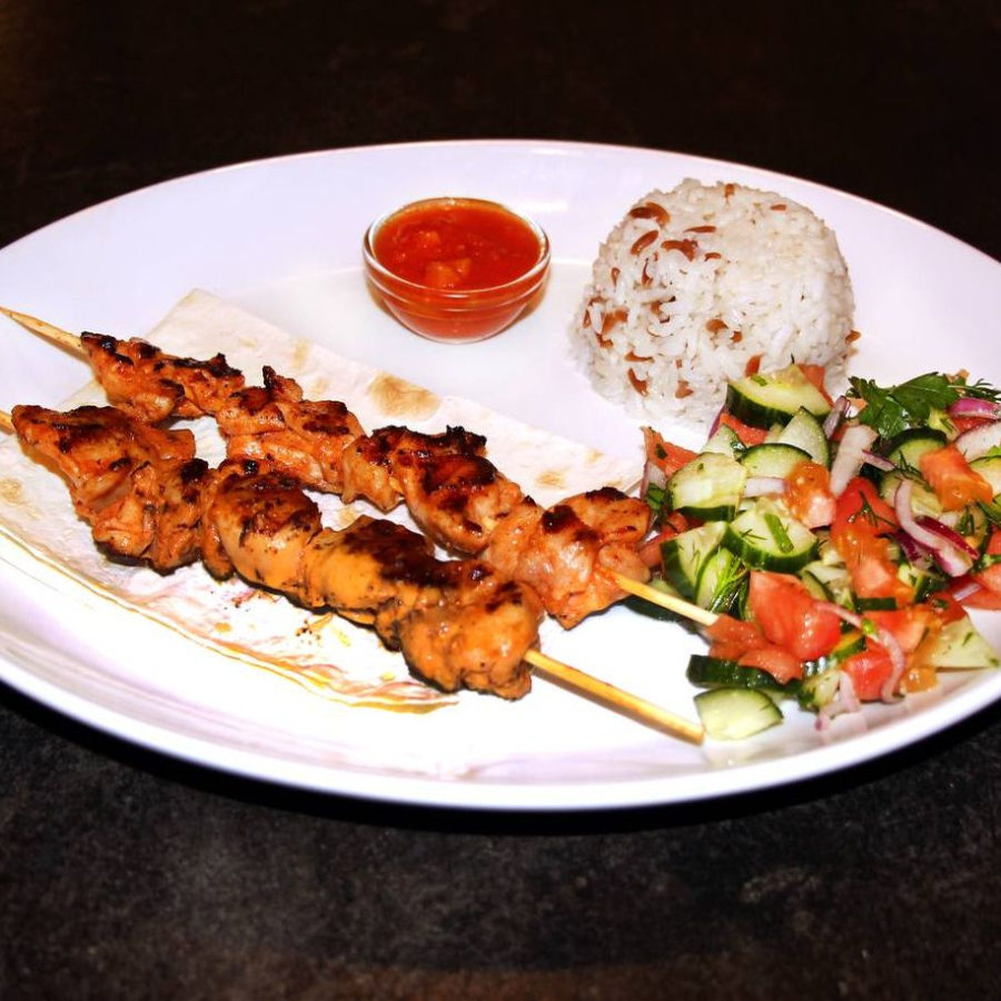 Говядина, рис, томатный соус, чобан салат.