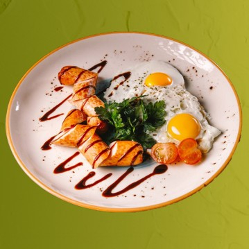 Заказать Яйца с сосисками и черри, Mideo Lounge