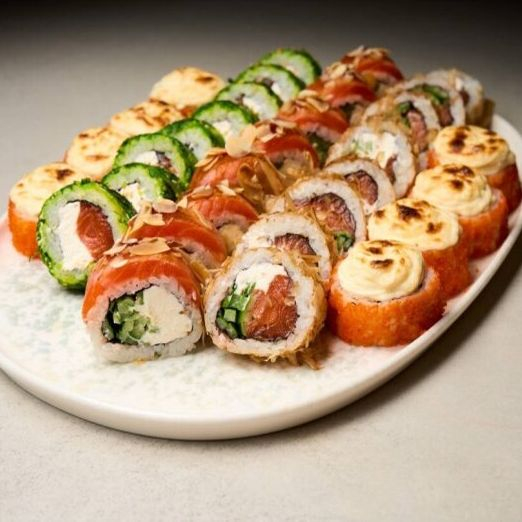 Ролл Красный дракон, Ролл Зелёный дракон, Ролл с лососем и хияши, Ролл Токио.