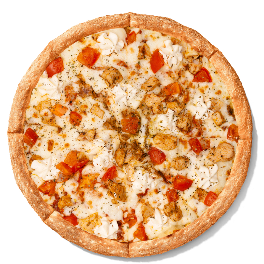 Заказать Томатный соус, соус песто, сыр моцарелла, цыпленок, томаты, сливочный сыр, итальянские травы.