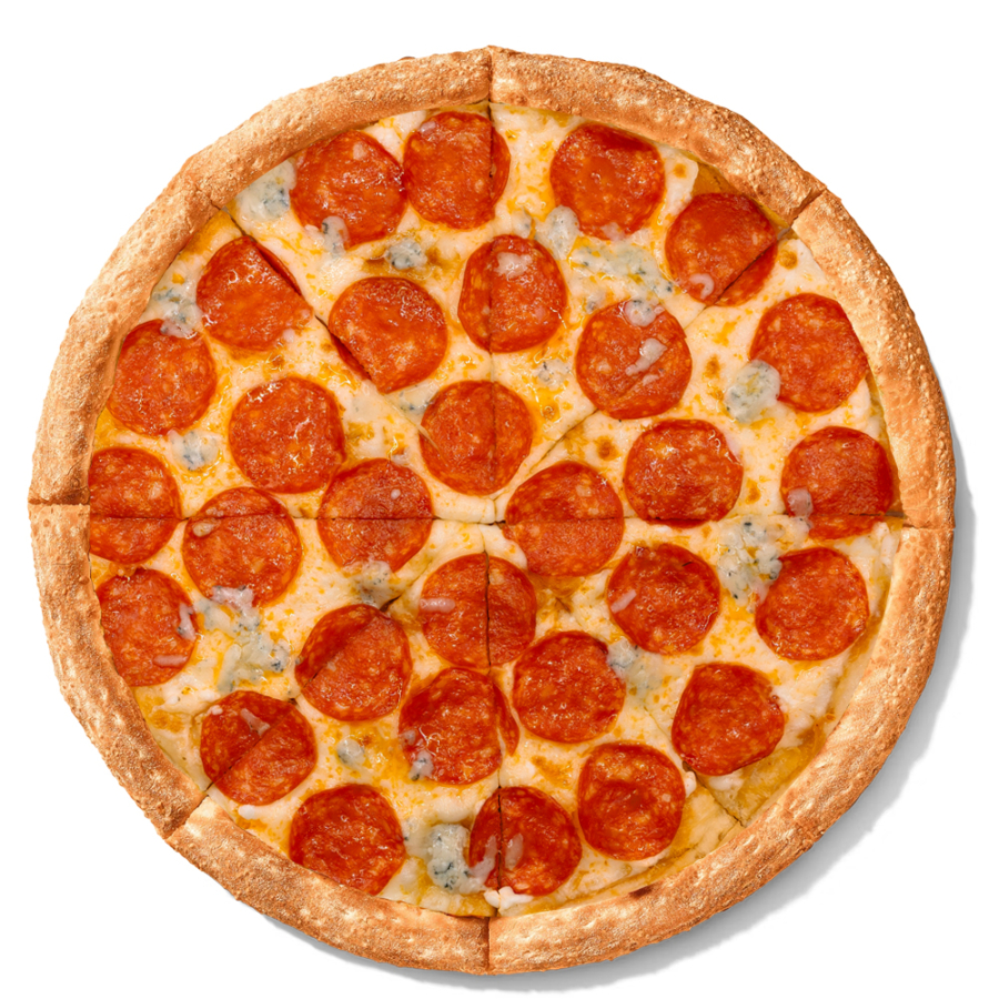 Белый соус с блю-чиз, пепперони, сыр моцарелла.