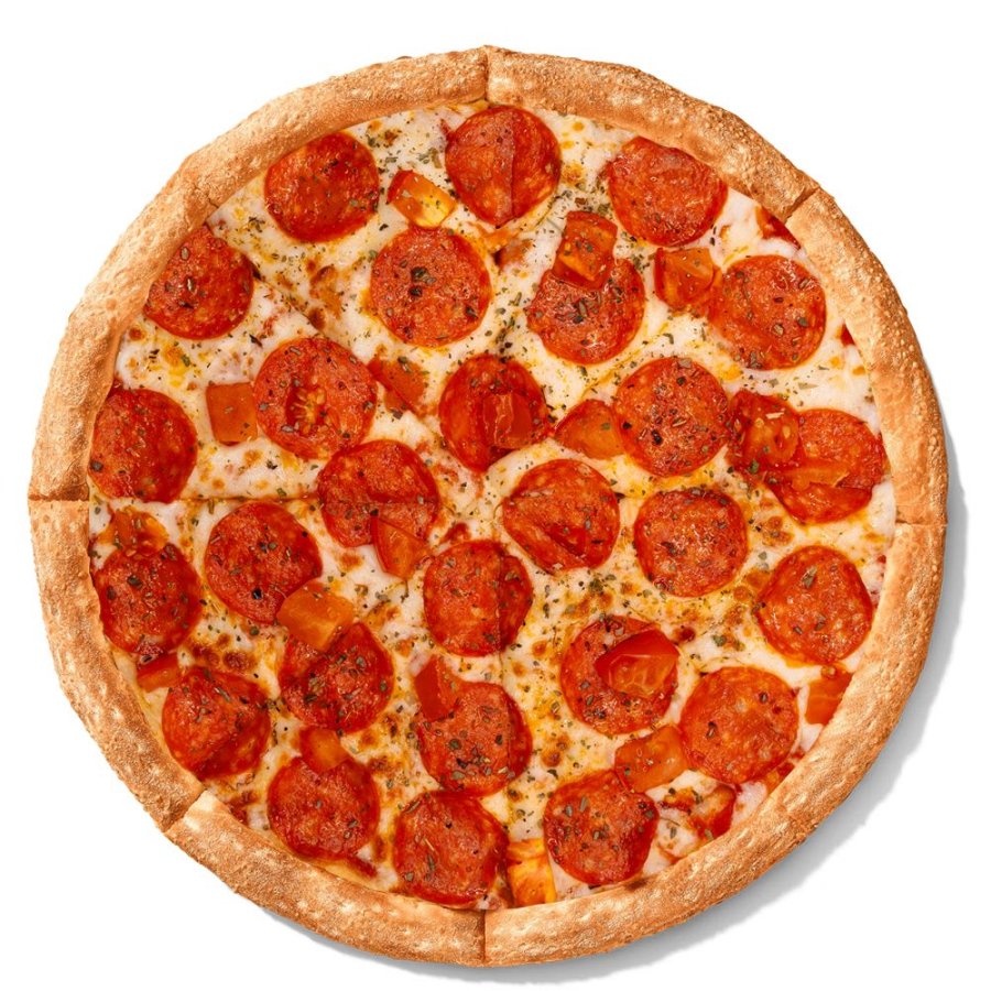 Заказать Томатный соус, сыр моцарелла, пепперони, томаты, итальянские травы.