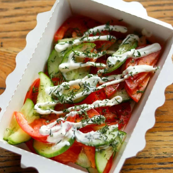 Заказать Свежий огурец и помидор заправленный фирменным сливочно-чесночным соусом.