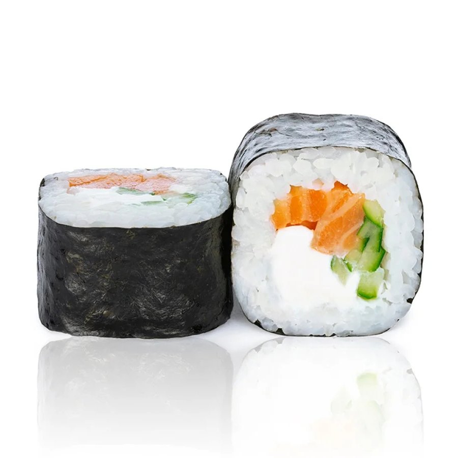 Лосось, сыр Cremette, огурец, рис, нори.