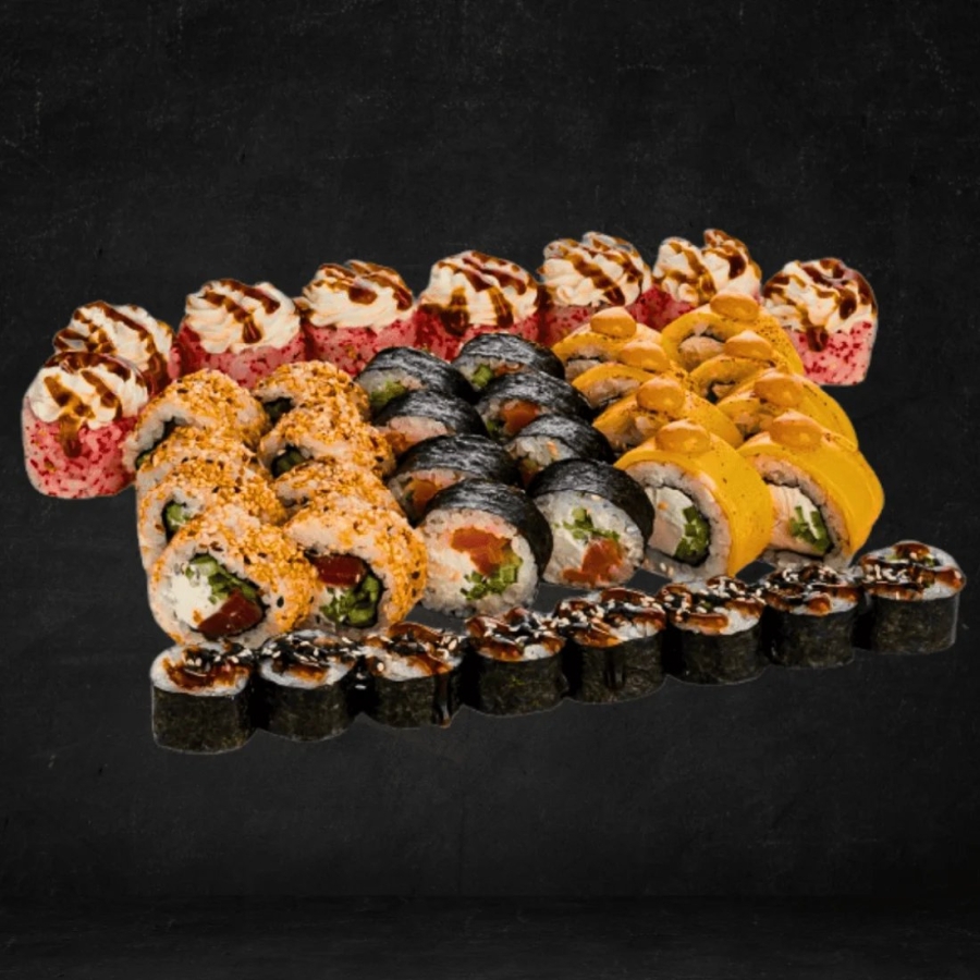 Калифорния сурими (Рис, нори, сливочный сыр, крабовые палочки, огурец, Масага красная, Спайси соус). Хияши (Рис, нори, сливочный сыр, лосось, креветка, салат чука). Тропикана fresh (Рис, нори, семга, сливочный сыр, манго, манго соус). Филадельфия с огурцом (Рис, нори, сливочный сыр, лосось, огурец). Аризона (Рис, нори, сливочный сыр, лосось копченный, огурец, кунжут, соус Унаги). Бонито (Рис, нори, сливочный сыр, лосось терияки, огурец, стружка Тунца). Аляска (Рис, нори, сливочный сыр, лосось, угорь, огурец, Масага красная).