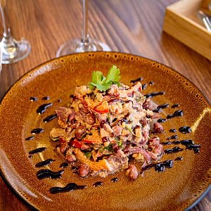 Салат с телятиной, красной фасолью, болгарским перцем и грецким орехом.