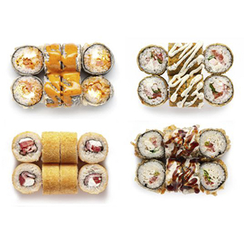 Филадельфия классика, Филадельфия с огурцом, Спэшал, Сезам, Импера с курицей, Импера с лососем.