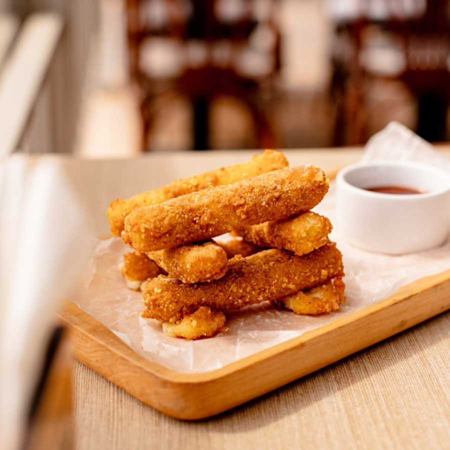 Рыбное филе в хрустящем кляре, картофельные дольки.