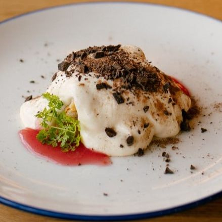 Заказать Печенье савоярди, пропитка коньячная, крем на основе сыра маскарпоне и сливок, кули из красной смородины, шоколад.