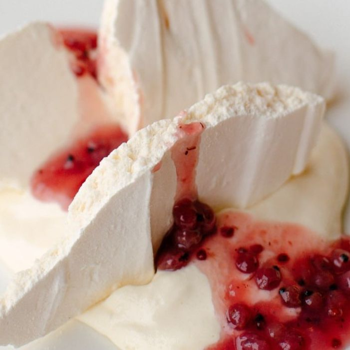 Заказать Меренга, крем на основе сыра маскарпоне и сливок, кули из красной смородины, свежие ягоды.
