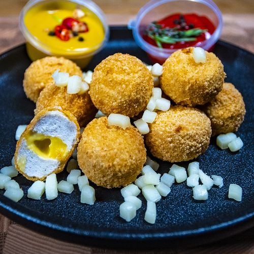 Куриное филе, сыр, панировка, растительное масло, специи.