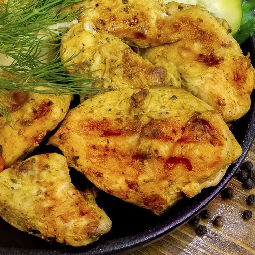 Картофель, молоко, куриное филе, масло сливочное, петрушка, сухари панировочные, свежий огурец, свежий помидор, морковь, лук жареный, семечки кунжута.
