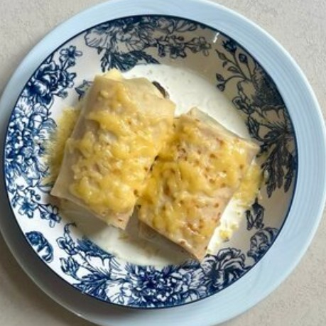 Блинчики запеченные с ветчиной и сыром в сливочном соусе