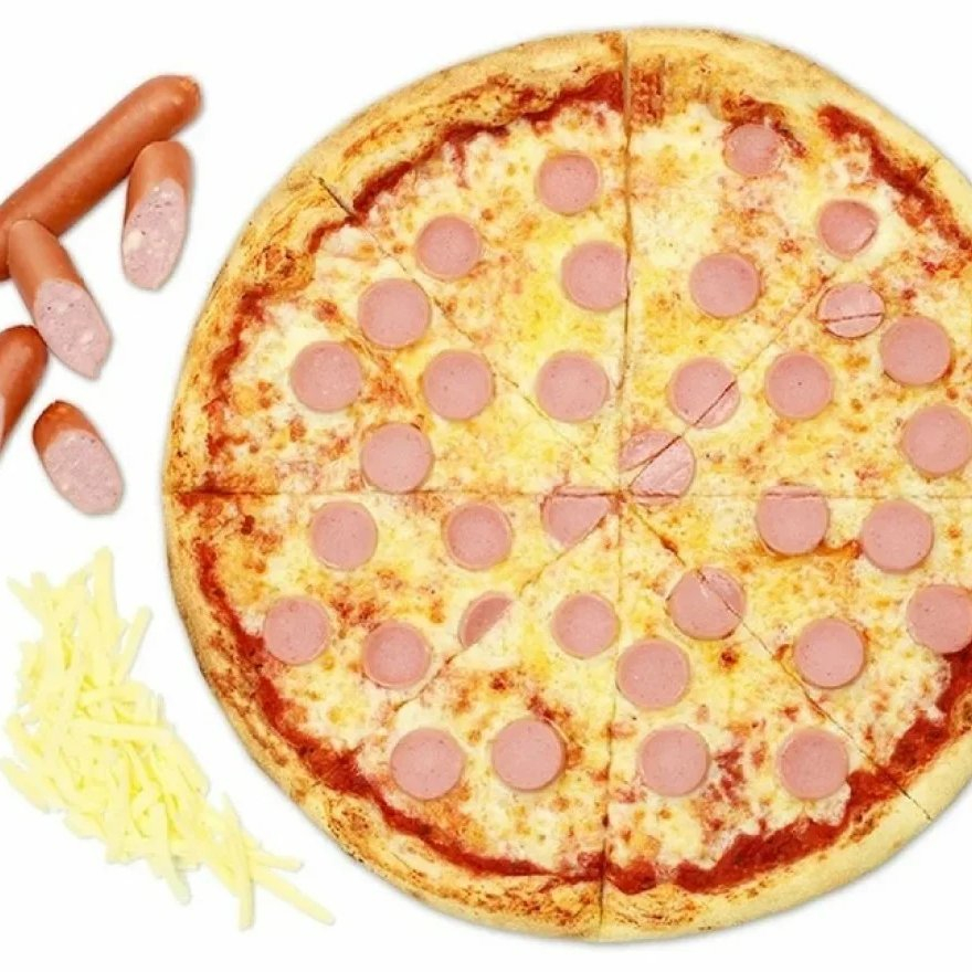 Сыр моцарелла, сосиски, кетчуп.