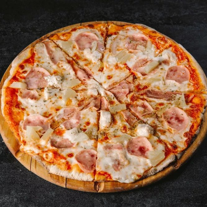 Сыр моцарелла, ананас, ветчина, бекон, куриное филе.