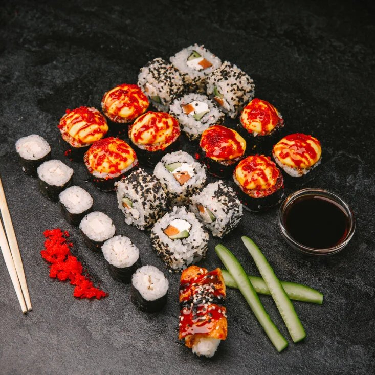 Ролл Сяке Нигири, ролл Терпеливый Эби Маки, ролл с курицей, ролл Аппарат Ивана.
