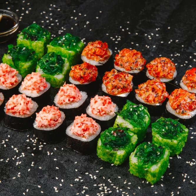Ролл Острый язычок (острый), ролл Мария Ивановна, ролл Вулканическое Извержение.