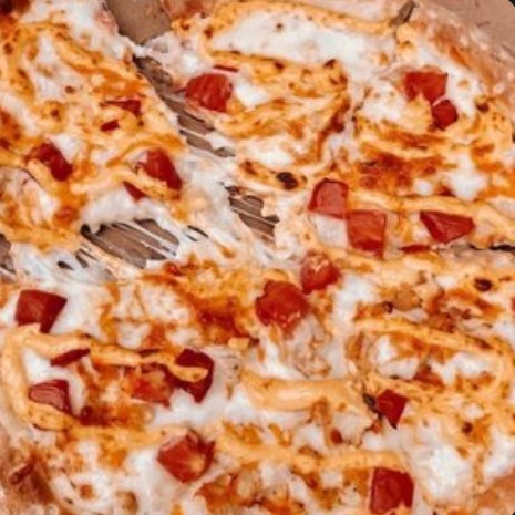 Томатная паста, сыр моцарелла, куриное филе, сырный соус, томаты.