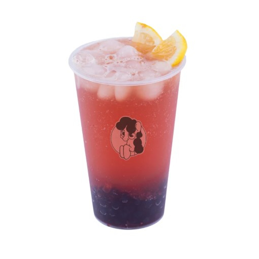 Шарики боба виноград, лед, лимон, джем красный виноград, сироп зеленый виноград, зеленый чай.