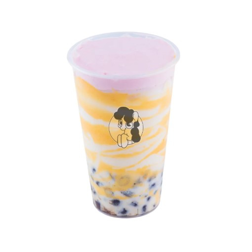 Хрустальная боба, паста манго-маракуйя, лед, молоко, сироп кокос, сырная пенка.
