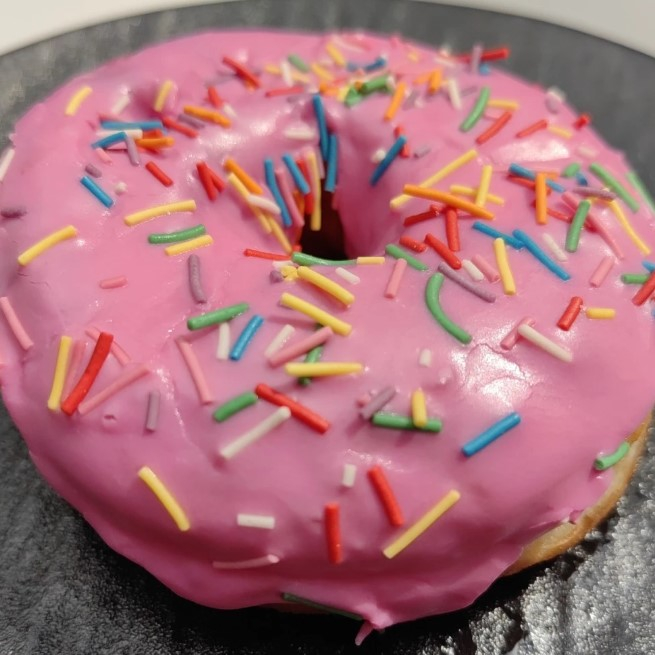 Малиновый джем, сахарная глазурь, кондитерская посыпка.