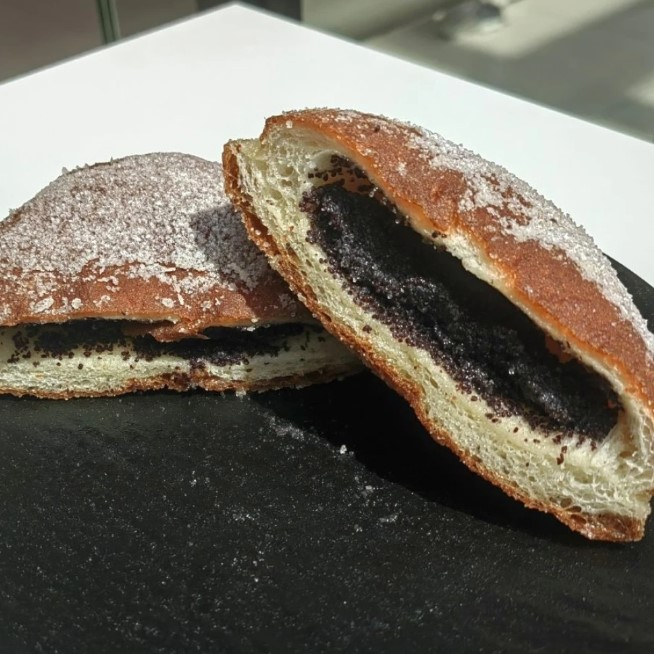 Вишнёвый джем, сахарная глазурь, воздушный рис.