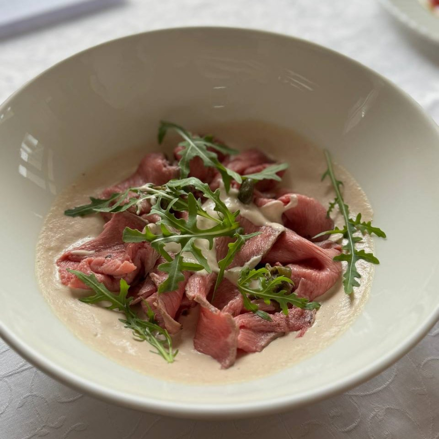 Тар-тар из говядины с муссом из грибов и хэшбраун. Упаковка включена в стоимость.