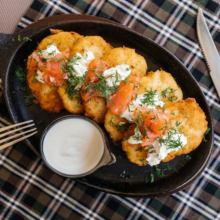 Заказать Драники со слабосоленой семгой, Пряности и Радости