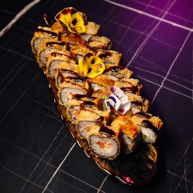 Сет из роллов темпура +1 соевый,1 васаби,1 имбирь.