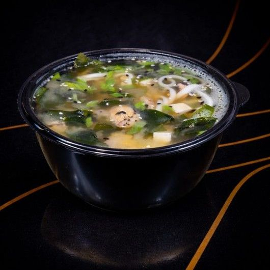 Заказать Сыр тофу, вакаме, лапша удон, шиитаке, лук зеленый, кунжут, мисо бульон, лосось.