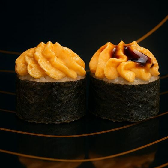 Ролл с креветкой и икорной шапкой