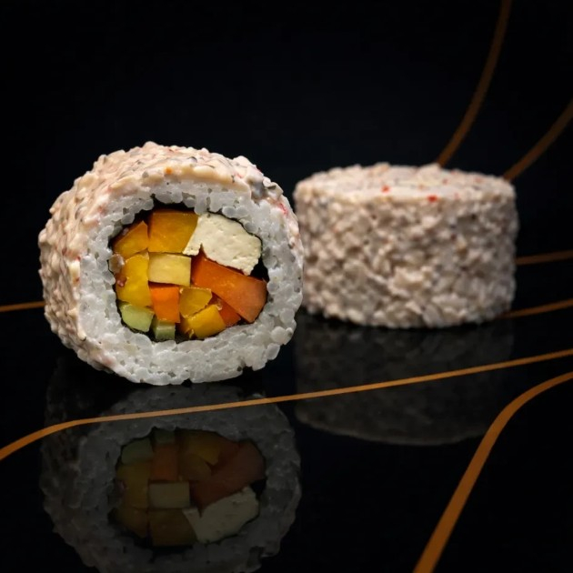 Заказать Рис, сыр Тофу, перец болгарский, такуан, шиитаке, соус Спайси.