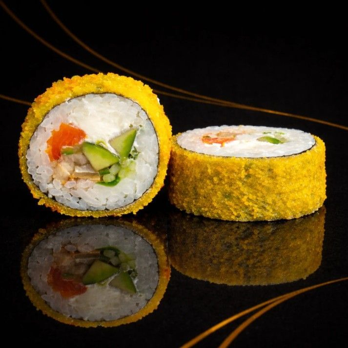 Рис, сливочный сыр, мидии, огурец, темпура.