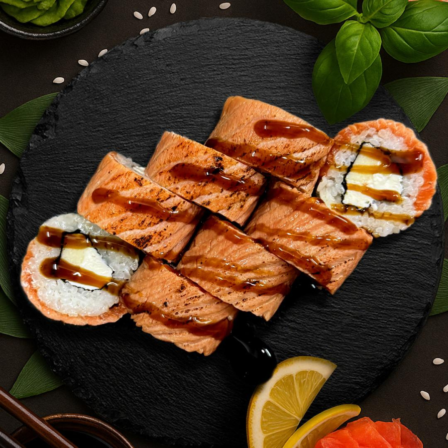 Ролл с опаленным лососем