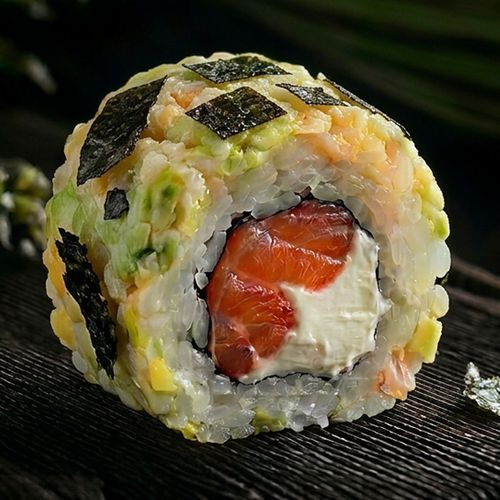Заказать Рис, сёмга с/с, авокадо, креветка, сыр кремчиз, нори.
