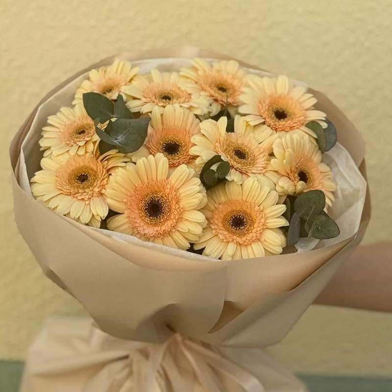 11 шт. гербер, 2 шт. эвкалипта, декоративная упаковка.