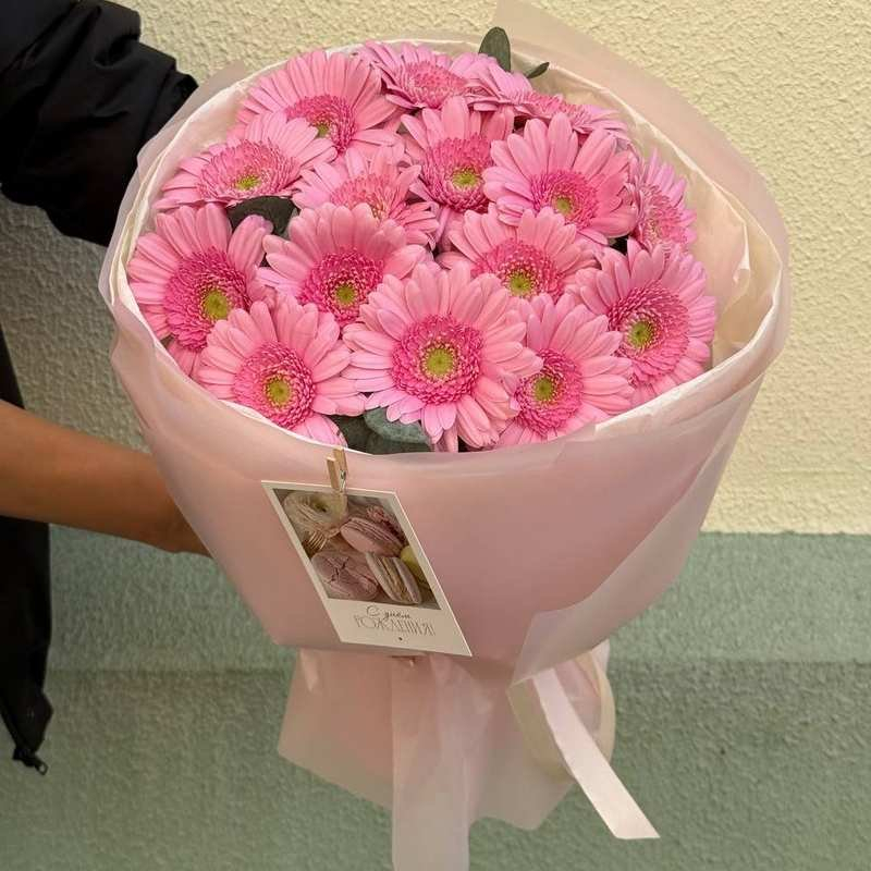 15 шт. гербер, 3 шт. писташи, декоративная упаковка.