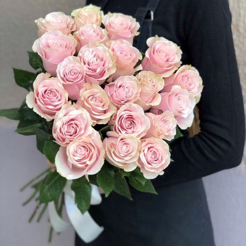 Кустовая роза, кустовая гвоздика, декоративная зелень, альстромерия. Возможны замены на альтернативные варианты.